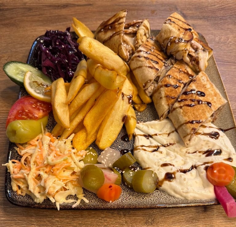 Bei May Food steht der Geschmack im Mittelpunkt. Frisch vom Spieß geschnittenes Shawarma, warmes Fladenbrot, knackige Zutaten und fein abgestimmte Soßen greifen perfekt ineinander. Schnell serviert, sauber zubereitet und konsequent auf Qualität ausgerichtet.